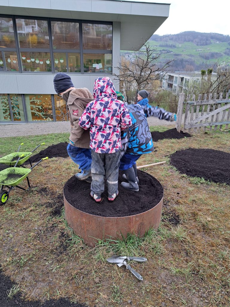 In Zusammenarbeit mit der Musikerin Zita Bucher und den beteiligten Lehrpersonen wurde eine Unterrichtsumgebung geplant, in welcher die Schüler:innen musikalisch- und gärtnerisch-erkundend dem eigenen Schulgarten begegnen sowie gemeinsam aushandeln und entscheiden, was im Garten leben und wachsen soll.